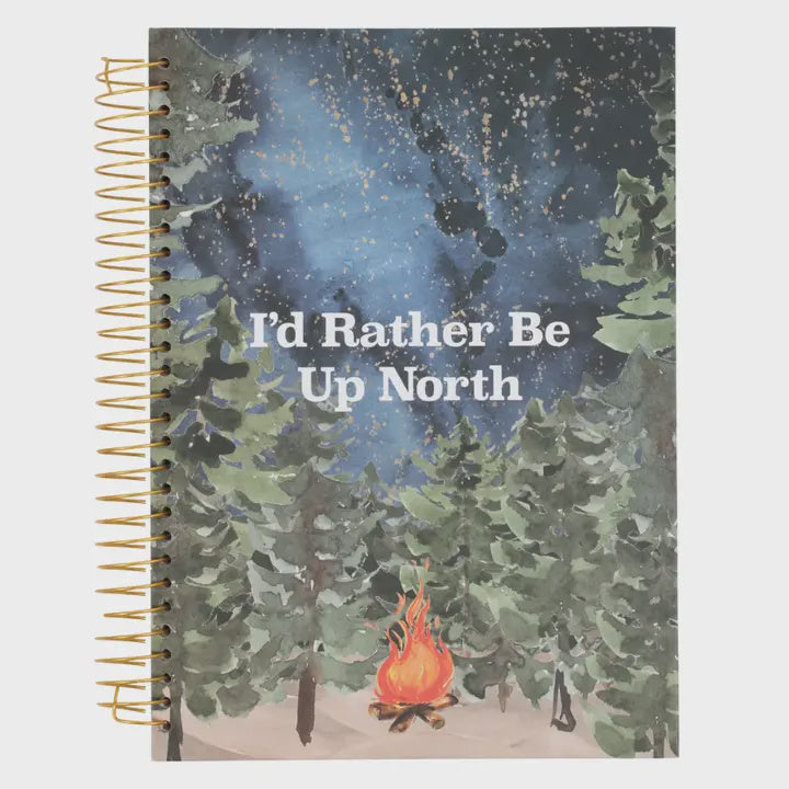 Explore the Northwoods with this nostalgic spiral notebook. Featuring a campfire deep in the woods under the stars of the great North!